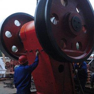 顎式破碎機(jī)俗稱顎破,又名老虎口。由動顎和靜顎兩塊顎板組成破碎腔,模擬動物的兩顎運(yùn)動而完成物料破碎作業(yè)的破碎機(jī)。顎式破碎機(jī)在礦山、建材、基建等部門主要用作粗碎機(jī)和中碎機(jī)。按照進(jìn)料口寬度大小來分為大、中、小型三種,進(jìn)料口寬度大于600MM的為大型機(jī)器,進(jìn)料口寬度在300-600MM的為中型機(jī),進(jìn)料口寬度小于300MM的為小型機(jī)。顎式破碎機(jī)結(jié)構(gòu)簡單,制造容易,工作可靠。顎式破碎機(jī)的工作部分是兩塊顎板,一是固定顎板(定顎),垂直(或上端略外傾)固定在機(jī)體前壁上,另一是活動顎板(動顎),位置傾斜,與固定顎板形成上大下小的破碎腔(工作腔)?;顒宇€板對著固定顎板做周期性的往復(fù)運(yùn)動,時而分開,時而靠近。分開時,物料進(jìn)入破碎腔,成品從下部卸出;靠近時,使裝在兩塊顎板之間的物料受到擠壓,彎折和劈裂作用而破碎。